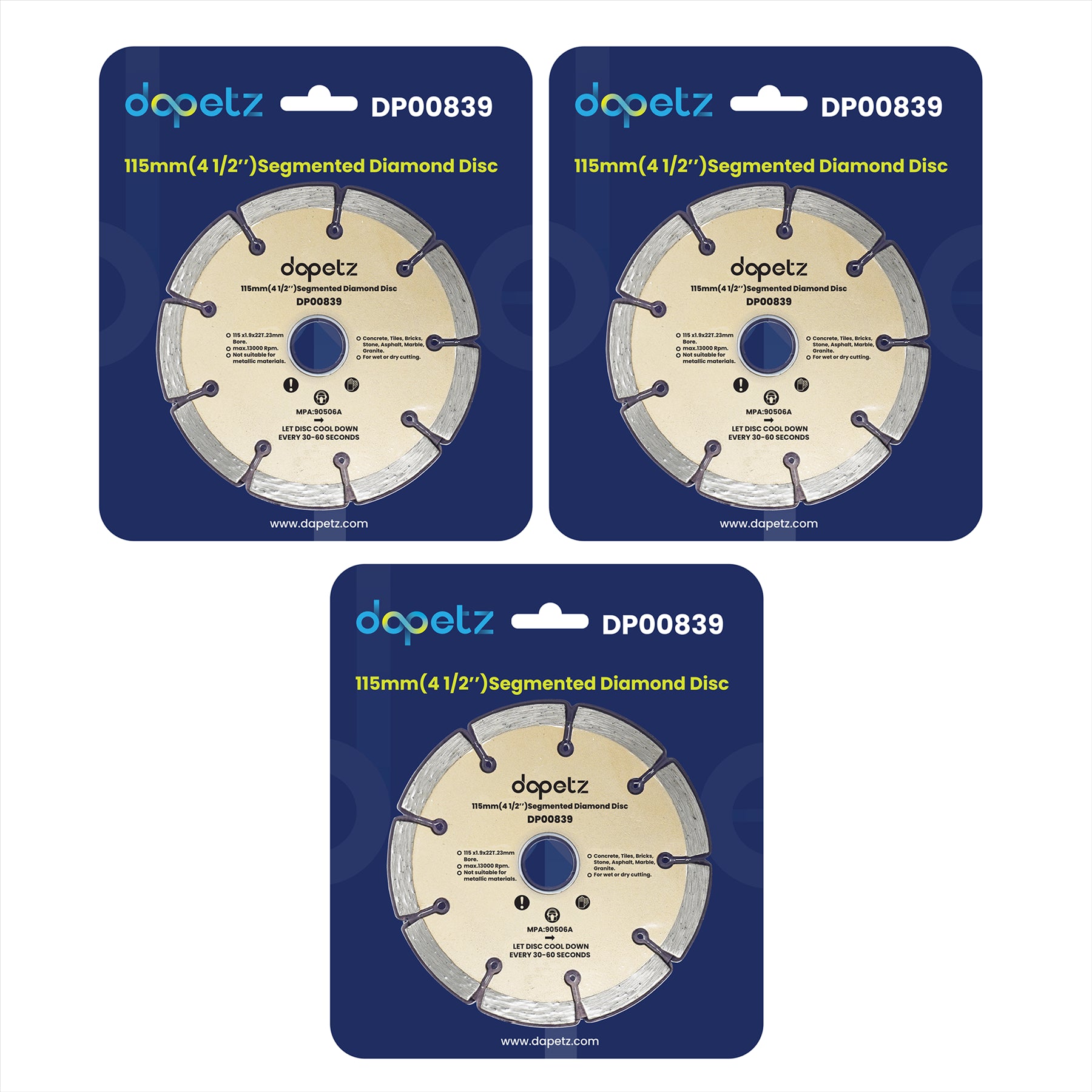 3 x 115mm (4,1/2″) Segmented Diamond Cutting Disc