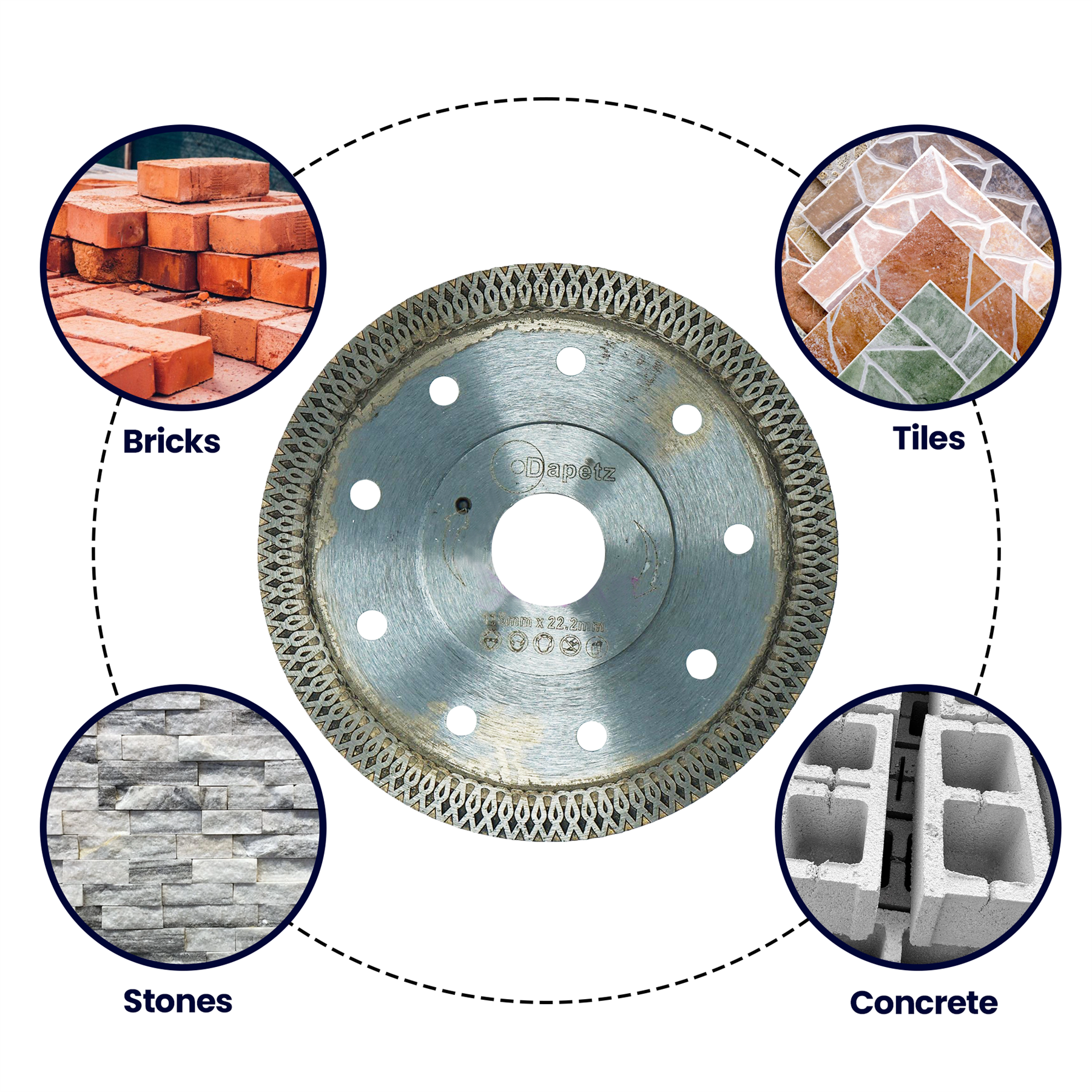 - Suitable for a variety of applications, including cutting concrete, tiles, asphalt, and stone, making it ideal for construction and renovation projects.