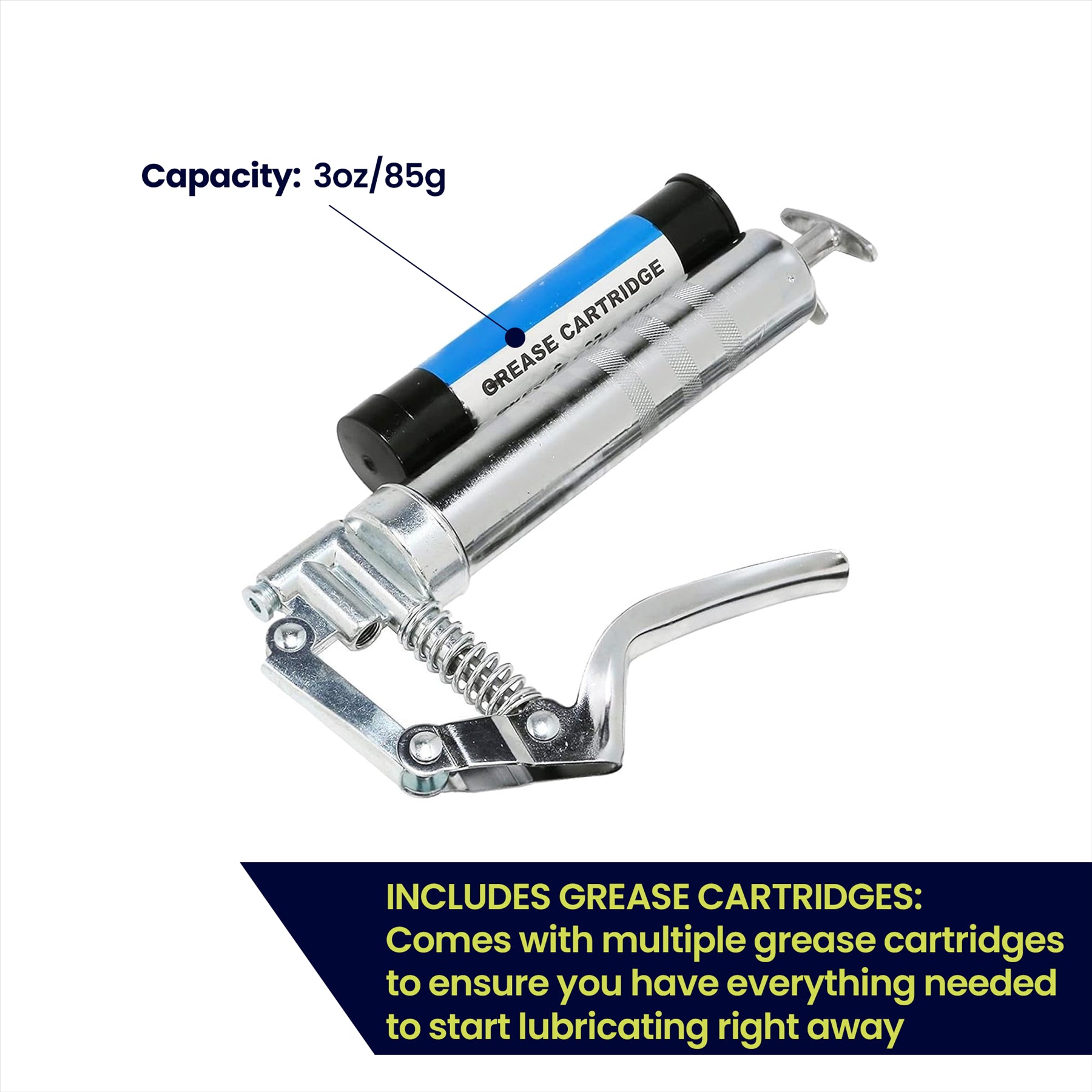 - INCLUDES GREASE CARTRIDGES: Comes with multiple grease cartridges to ensure you have everything needed to start lubricating right away.