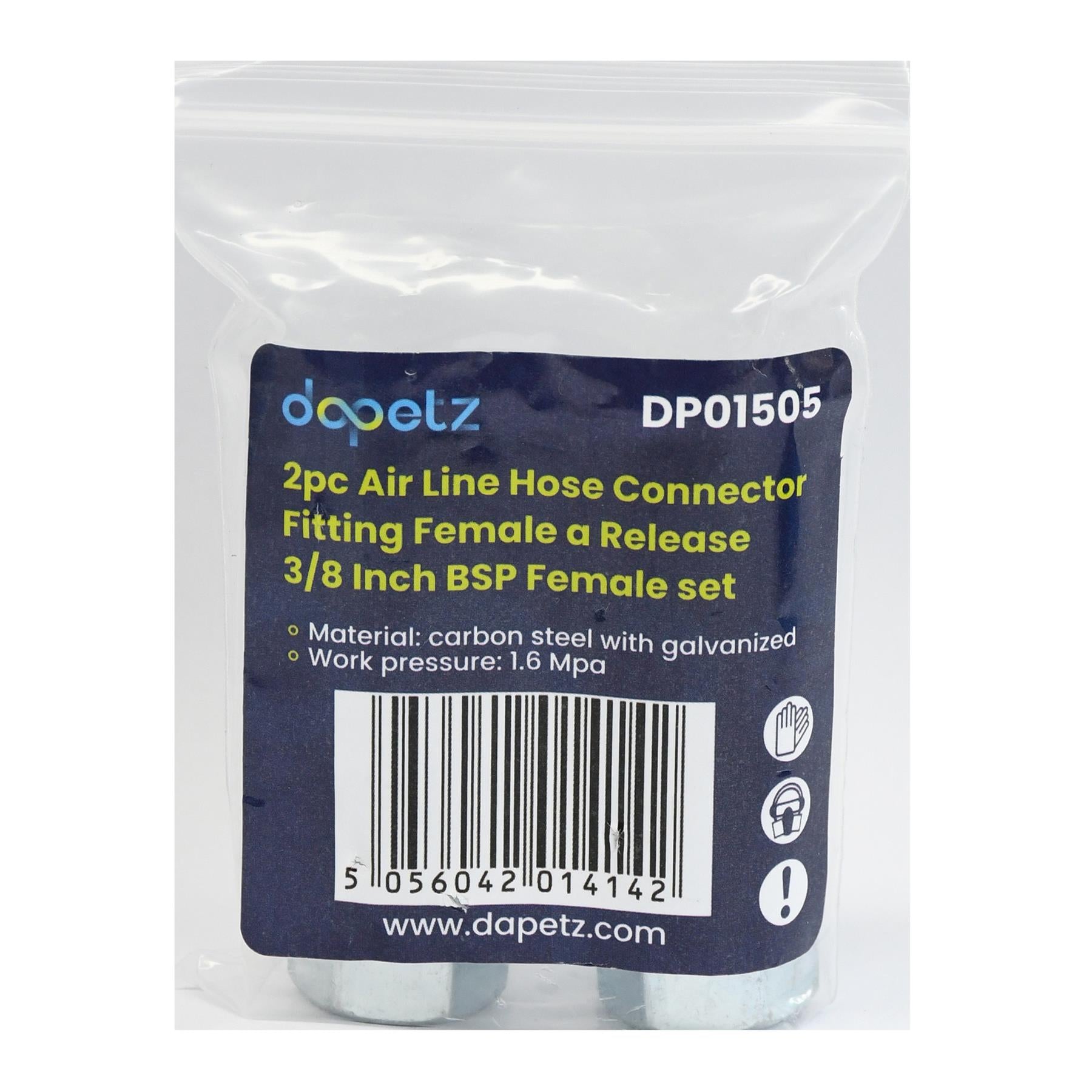 • Upgrade your air compressor system with the Pack of 2 Air Line Hose Connector Fitting Female Quick Release 3/8 Inch BSP Female by Dapetz. Designed for seamless connection and disconnection, these high-quality quick-release couplers ensure a tight, leak-free fit. Built from durable materials, these connectors are ideal for professional workshops, garages, and DIY applications.
